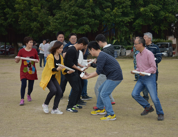 2月4日中午,公司全員順利抵達(dá)目的地。隨著熱身游戲“流水作業(yè)”的開展,本次活動的第一個項(xiàng)目——團(tuán)體拓展正式開始。“無敵風(fēng)火輪”、“螃蟹賽跑”等項(xiàng)目不斷將活動推向高潮,你爭我趕的氛圍讓大家在游戲中加強(qiáng)了團(tuán)隊(duì)協(xié)作意識和集體榮譽(yù)感。最后,拓展活動在“鼓舞飛揚(yáng)”中圓滿結(jié)束。